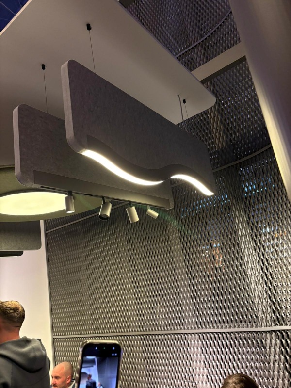 La integración entre iluminación y confort acústico ganó protagonismo en oficinas, hospitality y espacios corporativos, reforzando una visión más completa del bienestar espacial.
